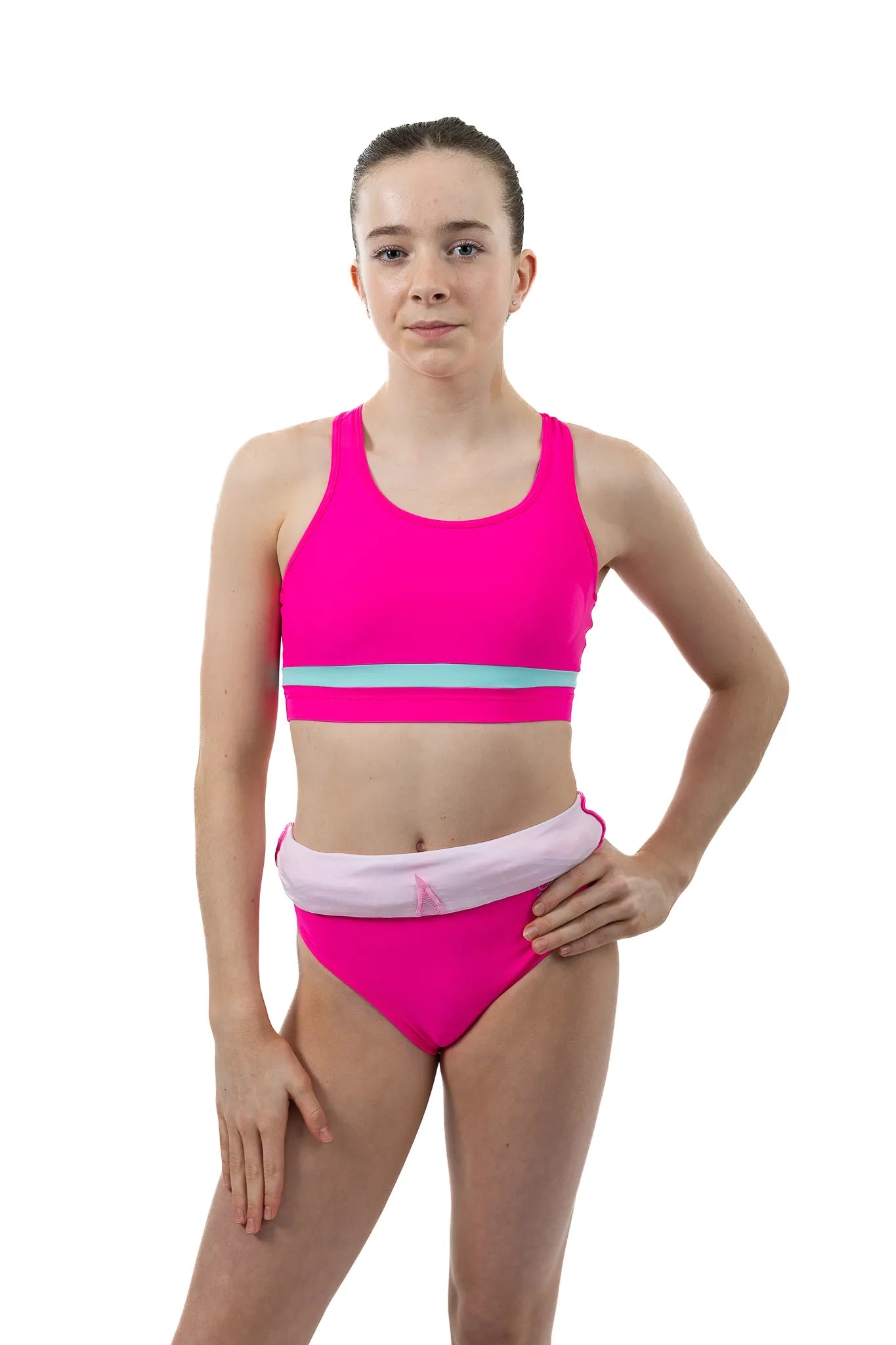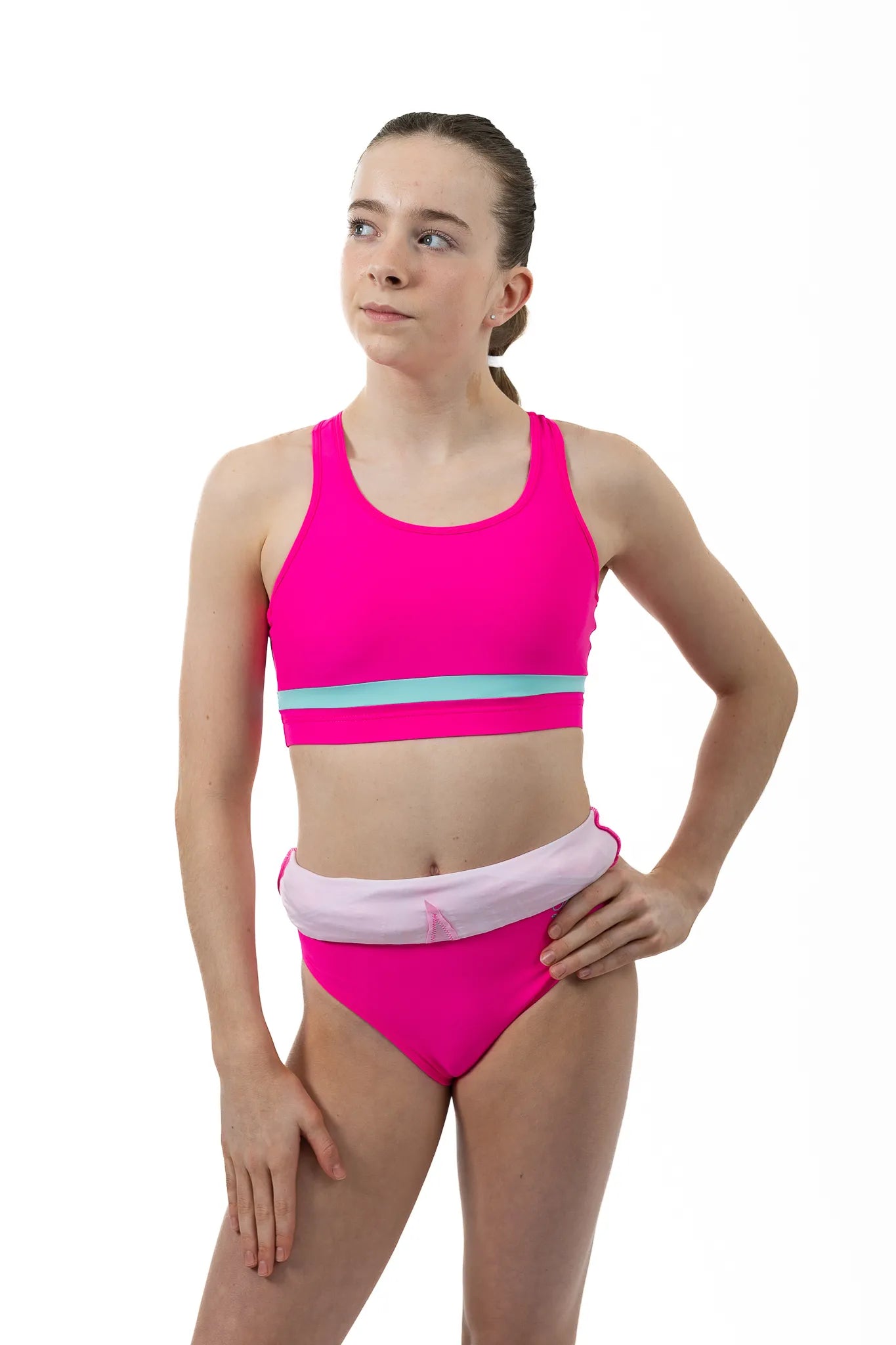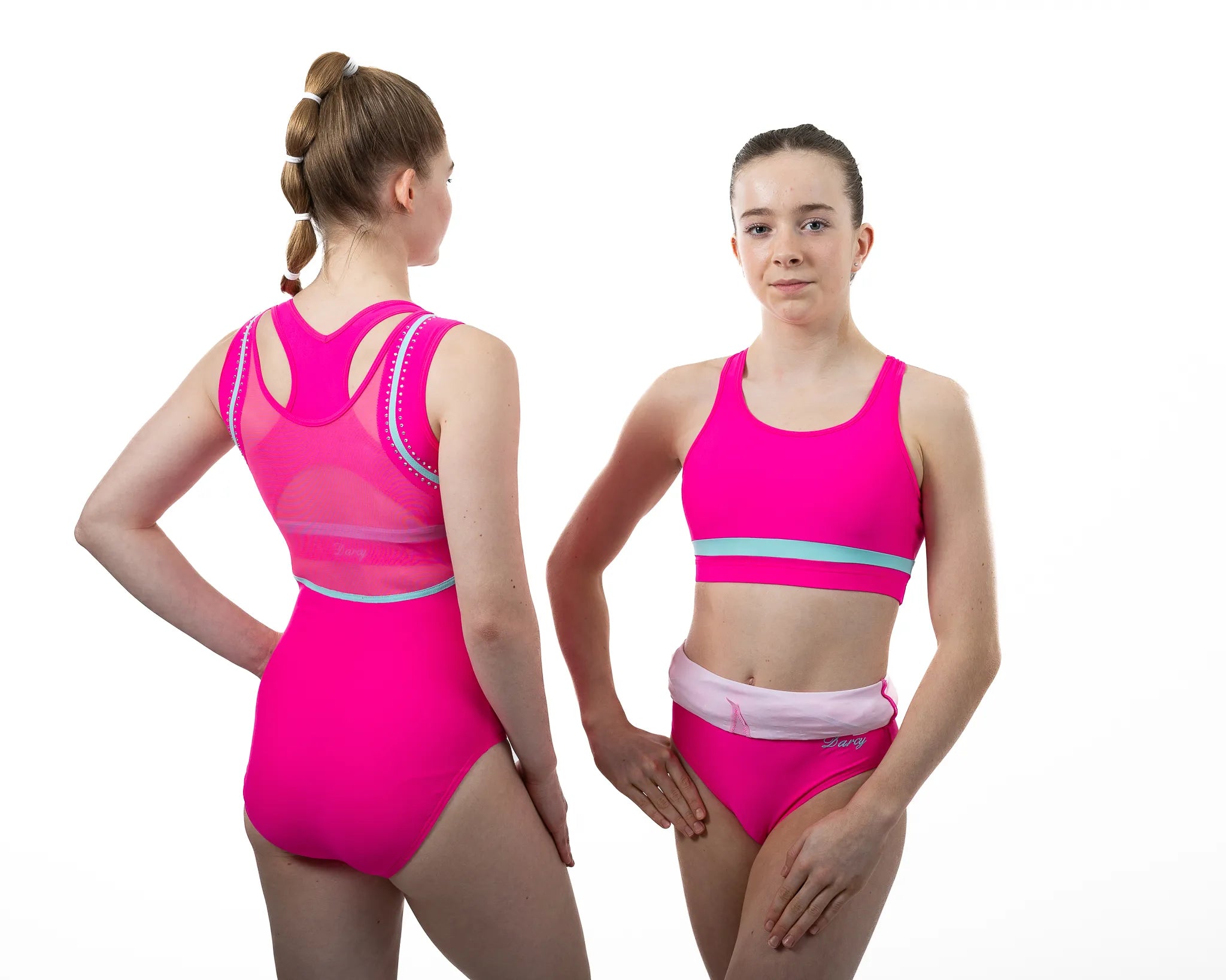Our NEW innovative Leotard / Crop-Top sets are perfect for gymnasts who like the comfort and support of a crop-top under their leotard but still want to show off those beautiful backs! A full 4-way stretch breathable Lycra leotard, lined for comfort and modesty; all leotards come with a matching crop-top and with additional support of cups in sizes AXS upwards. With the option to wear up or down you can now perform with confidence and style. Say goodbye to unsightly uncomfortable bras that don't match your leotard and Step-Up your game wearing this stunning innovative Leotard / Crop-Top set ... its 100% a game changer!
