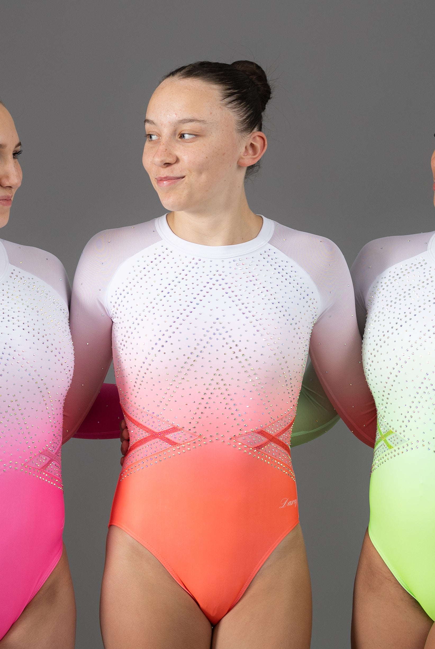 Our club competition & training Leotards are available to order. Why not browse our existing designs and view the many colour combinations and fabrics we have available to create your unique club leotard. Alternatively, you can be super creative and share your ideas with our design team, who will help create your very own unique bespoke leotard. All leotard designs are available as long, 3/4 or short-sleeved.