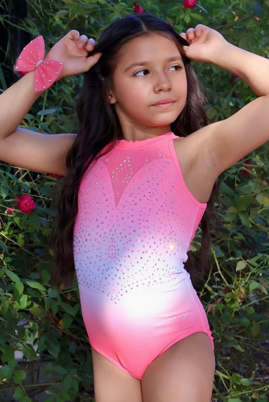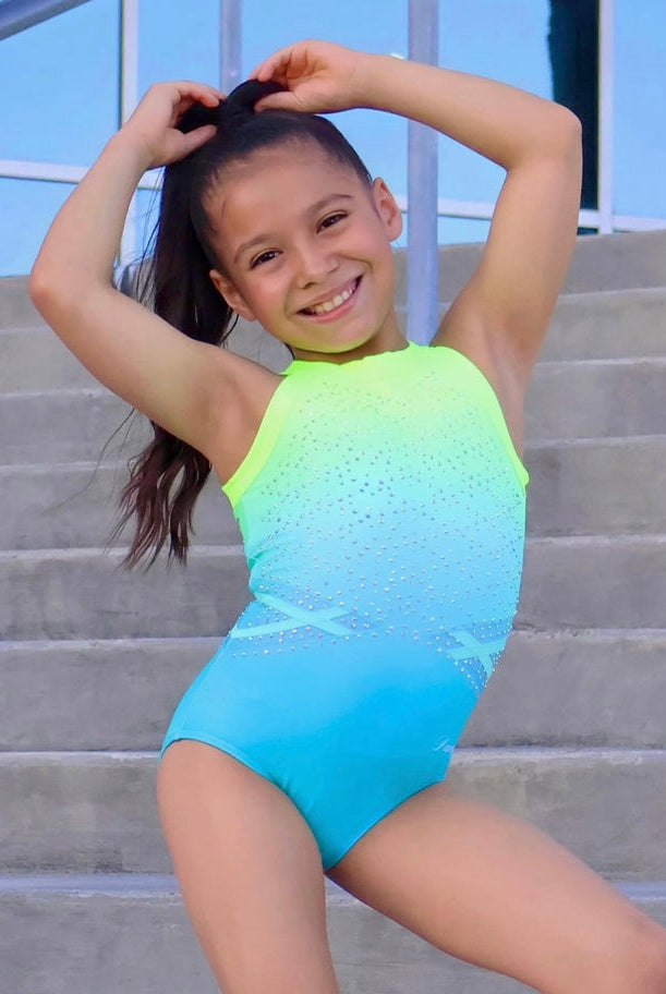 Prepare to be amazed by this gorgeous leotard!! In a sugary colour way of Minty Green / White and a beautiful ombre mesh bodice overlaid on Pearl Mystique this leotard is super pretty! Adorned with AB Korean and Opaque Mint stonework and a flattering waistline, Buttermint has the most elegant high neck and criss-cross back detail. This leotard has a wow factor in style and design and is fully lined for comfort and modesty.