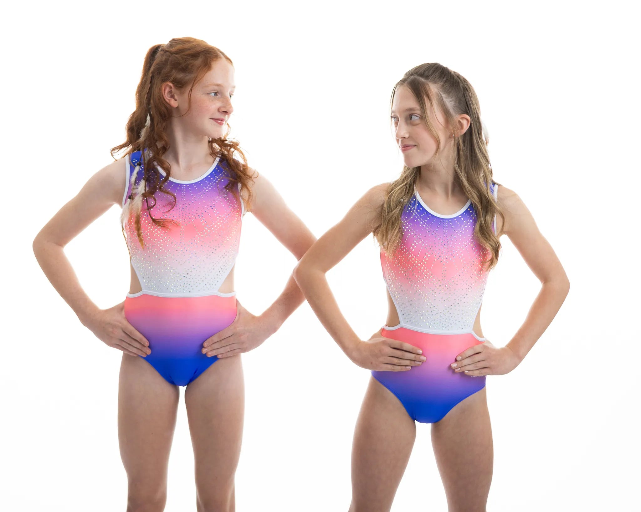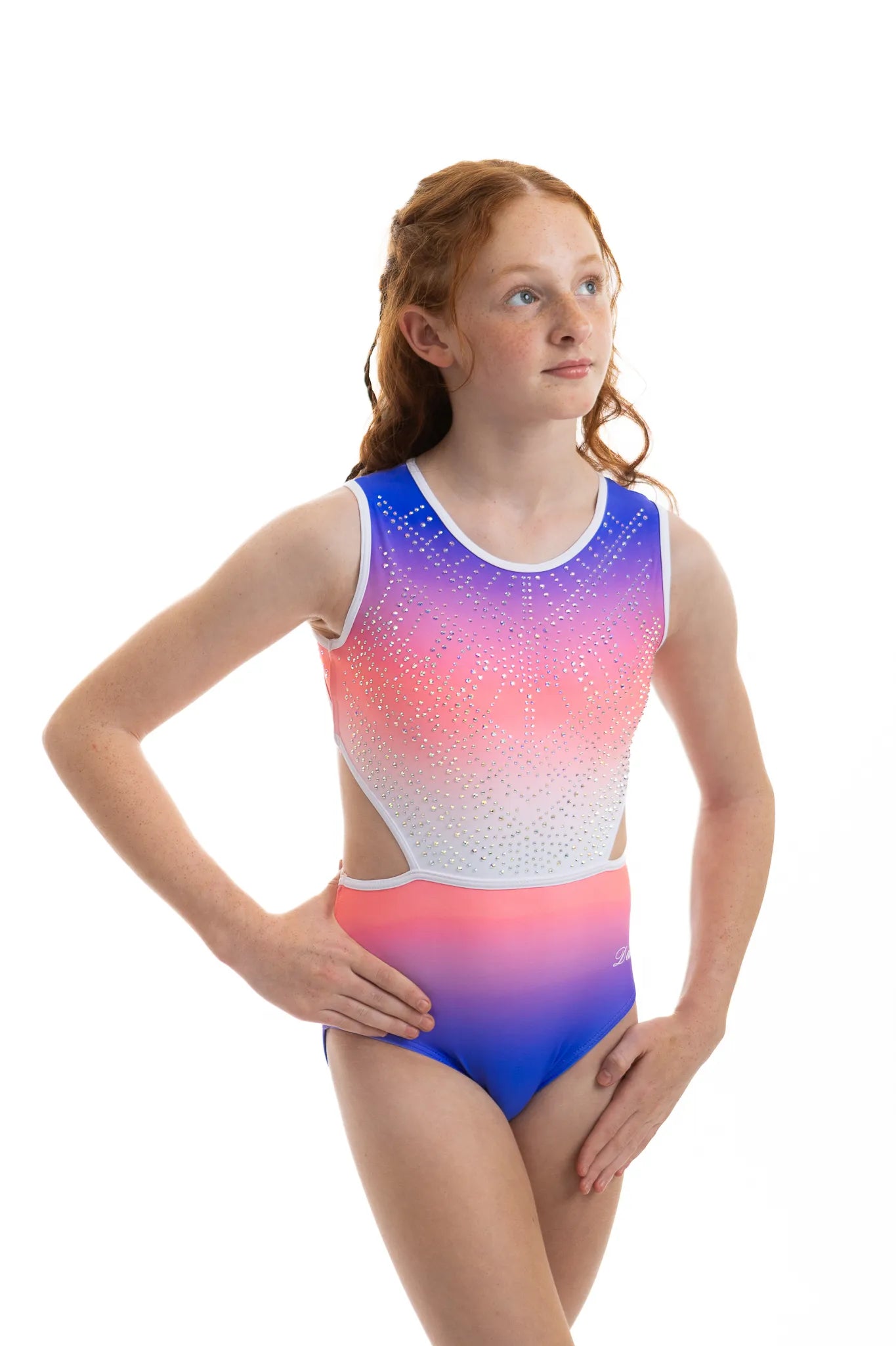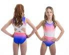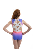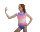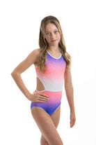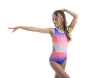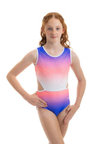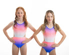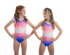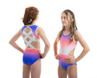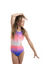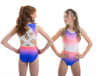 Der atemberaubende Ombre Lycra Turnanzug (vollständig gefüttert für Bescheidenheit und Komfort) Estelle hat die schönsten Steinarbeiten, die an die Aztekenzeit erinnern. Mit dem zusätzlichen NEUEN Merkmal unseres breiten elastischen Rückenteils ist dieser Turnanzug perfekt für Turnerinnen, die gerne in Komfort und Stil auftreten.