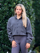 Egal, ob Sie vom Auto zur Turnhalle eilen oder an einem Ruhetag den Elementen trotzen, diese Jacke bietet alle Funktionen, die Sie benötigen, um Ihre Turnerin das ganze Jahr über warm zu halten. Mit einem Raglanärmel-Design lässt sie sich leicht darunter schichten, und ein praktischer Kordelzug an der Taille ermöglicht es Ihnen nicht nur, stilvoll auszusehen, sondern auch Ihren Körper wohlig warm zu halten. Die Seitentaschen sind perfekt, um auch Ihre Hände warm zu halten, und mit einem durchgehenden Reißverschluss und einem stylischen Gummizug können Sie Ihre Turnfrisur ordentlich halten. Warum kombinieren Sie sie nicht mit unseren passenden weichen grauen Leggings, um den Look abzurunden!
