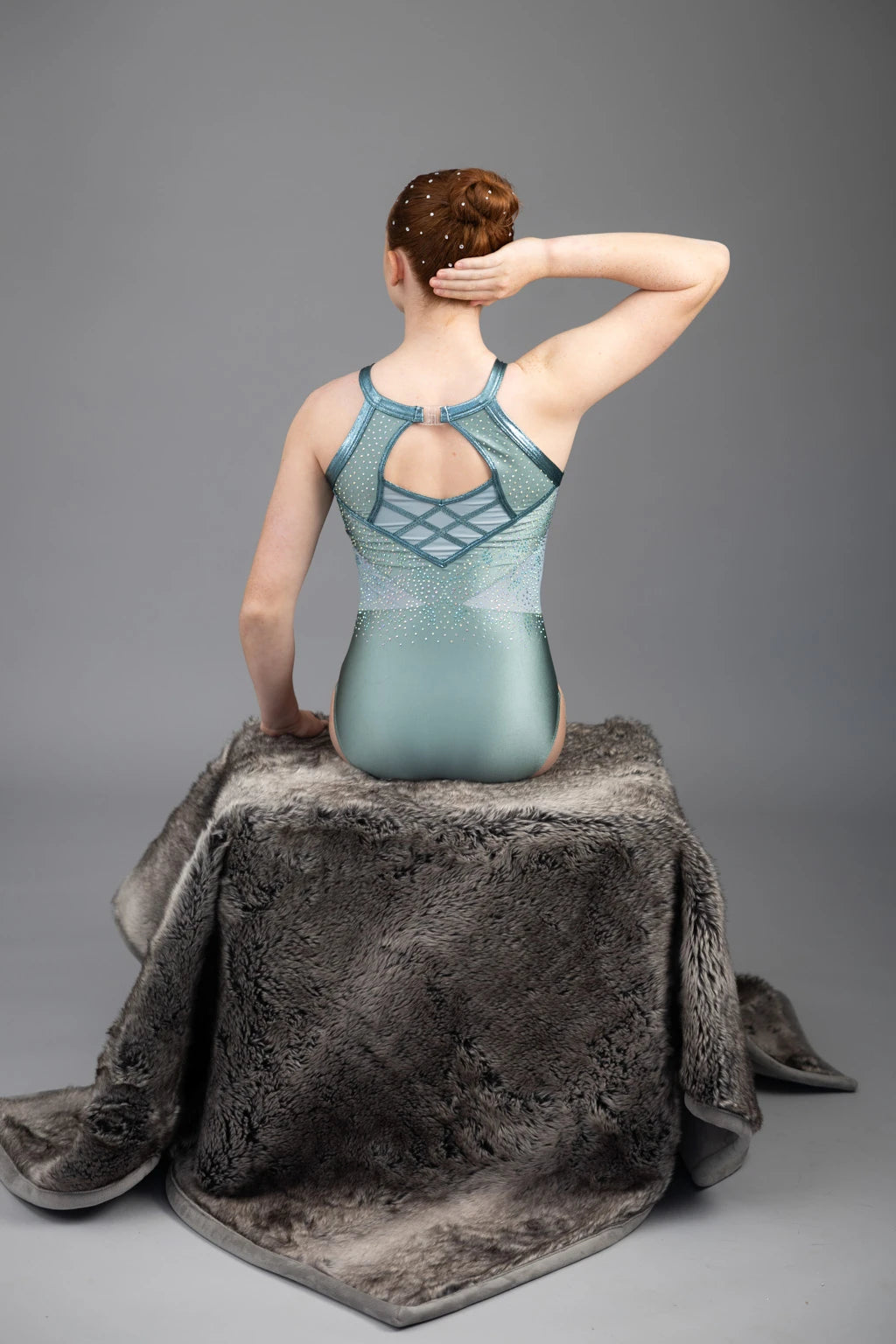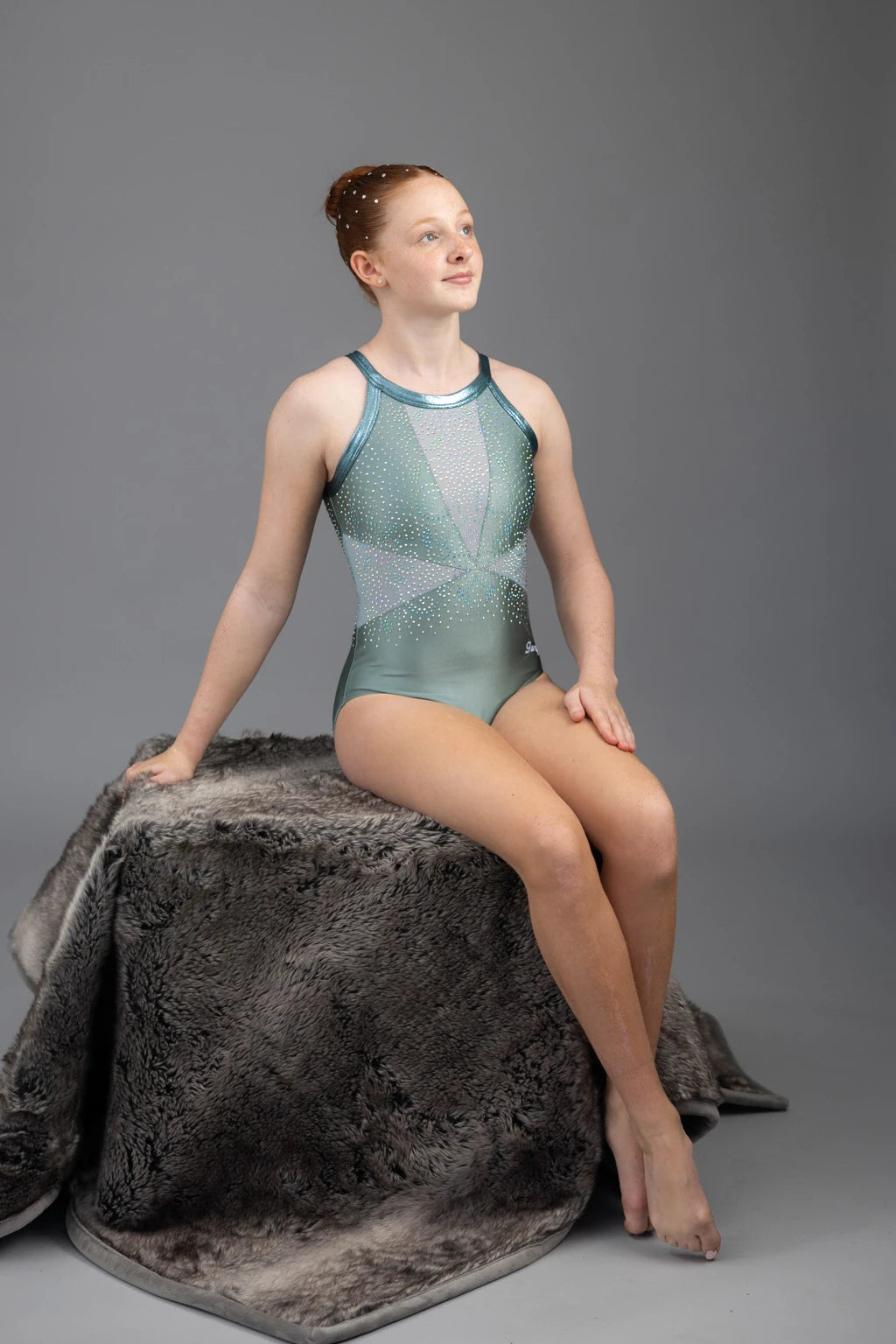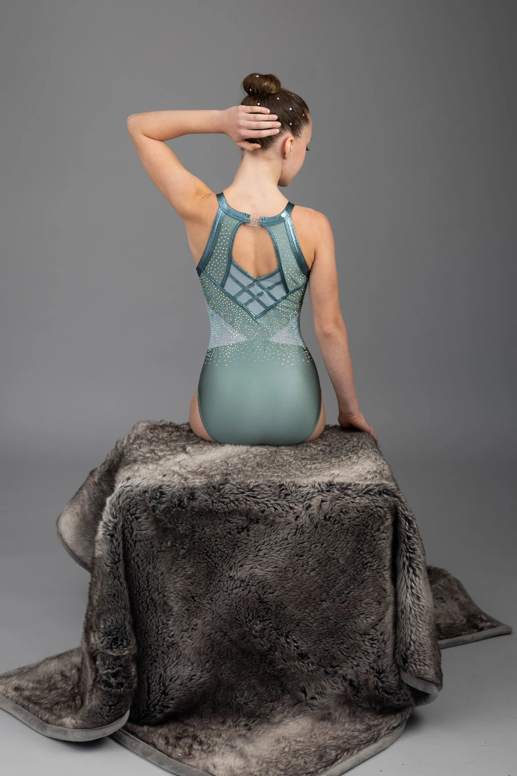 In leuchtendem weichem grünem Satin-Lycra verbindet der Eden Turnanzug Couture-Eleganz mit Performance-Komfort. Ein schmeichelnder V-Ausschnitt und formende Mesh-Seitenteile formen die Silhouette, während ein anmutiger hoher Kragen und teilweise offener Rücken das polierte Profil abrunden. Das Oberteil ist mit blumen- und blattinspiriertem Kristallkunstwerk aus Pink AB und Peridot AB-Steinen für ein edles, lichtreflektierendes Funkeln verziert.