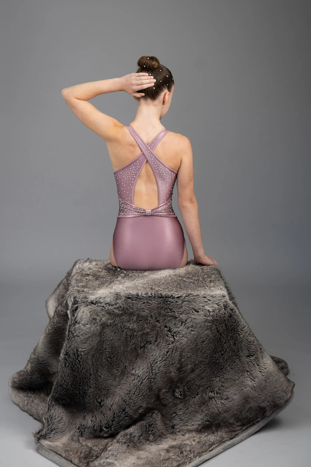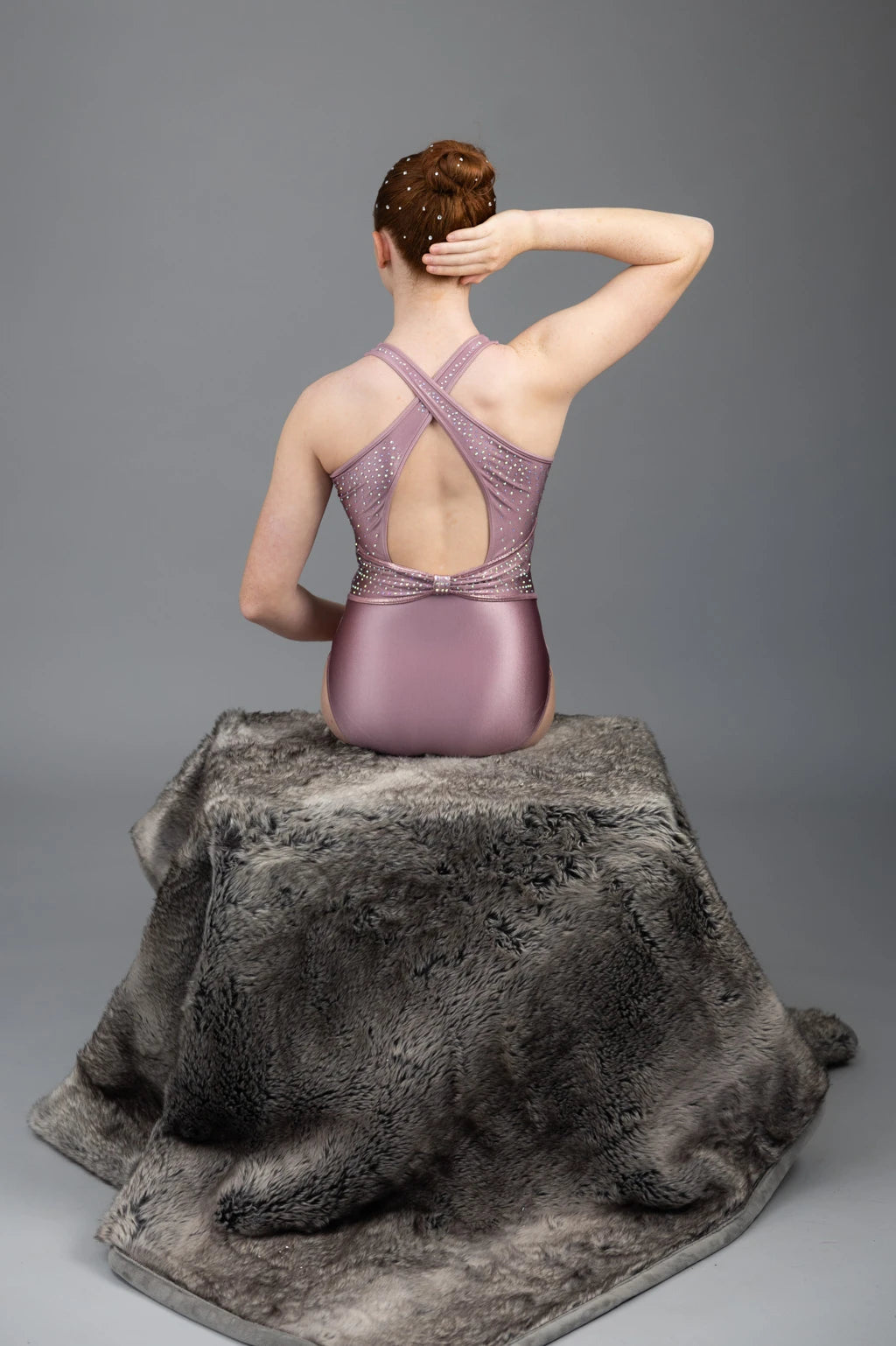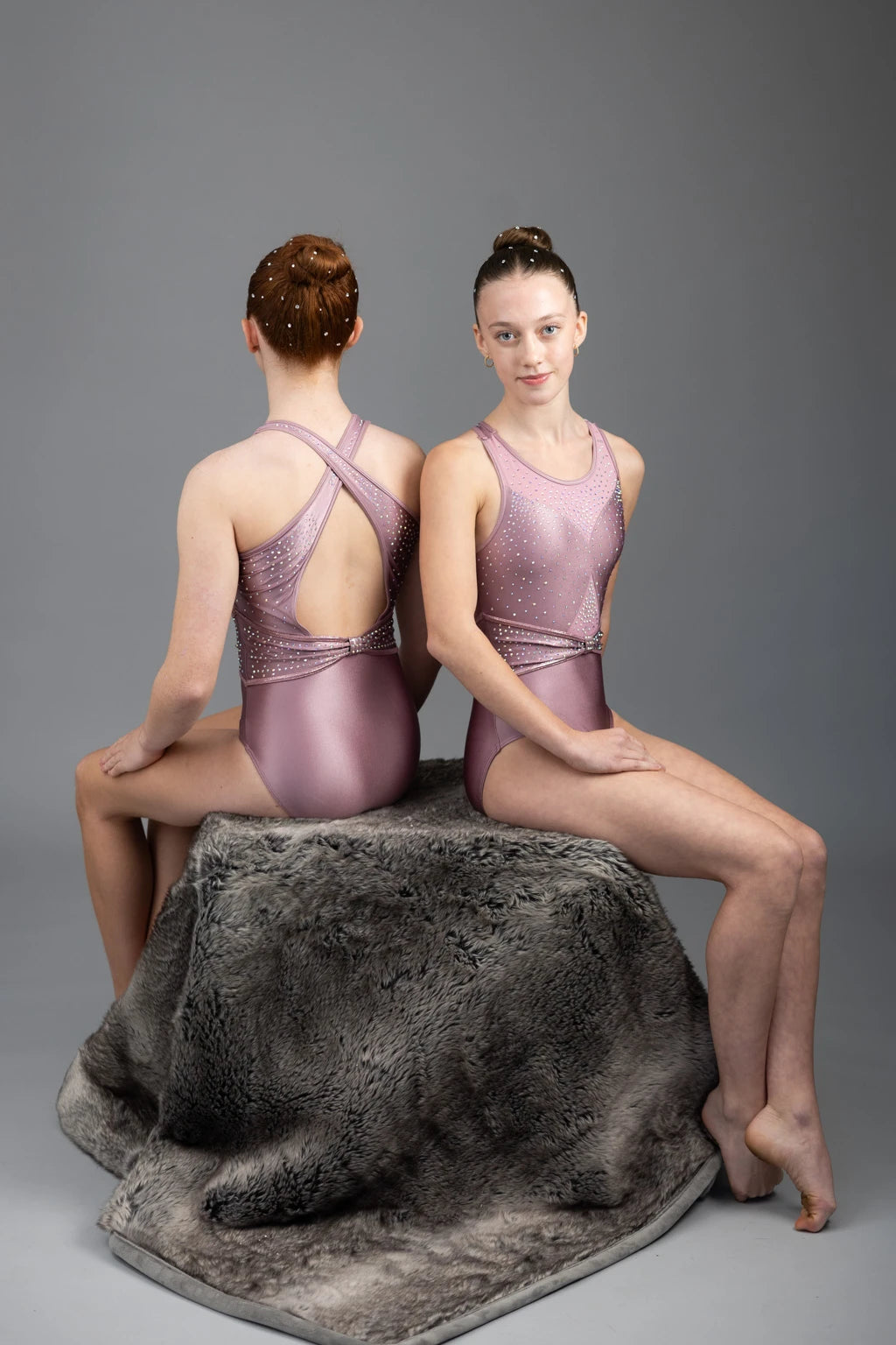 Gefertigt aus leuchtendem Blush Satin Lycra vereint der Turnanzug The Gift Couture-Charme mit Tragekomfort. Zarte Schleifendetails vorne und hinten verleihen den letzten Schliff, während ein anmutiger Überkreuz-Rücken die Bewegungsfreiheit sicher und bequem hält. Ein Sternbild aus AB-Kristallen fängt bei jeder Drehung das Licht ein – wunderschön auf dem Boden und perfekt als Geschenk.