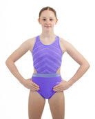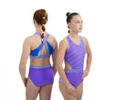 Dieses wunderschöne Design in Fliederfarbener Lycra mit Satin-Trägern und Applikationsdetails ist vollständig gefüttert und beinhaltet den integrierten SPORTS BRA (ab AXS 32”+). Es bietet die perfekte Balance aus Komfort und Selbstvertrauen, hält dich stilvoll und unterstützt während des Trainings.