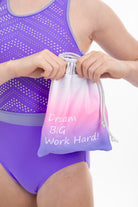 Vervollständige den Look: Füge eine passende Hand-Guard Bag mit einer personalisierten motivierenden Botschaft für deine Turnerin hinzu.
