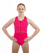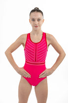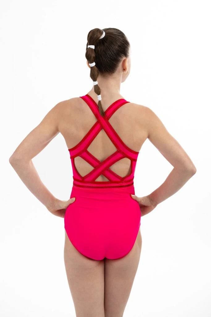 Dieser auffällige Turnanzug kommt in Cherry Pink Lycra mit funkelnden Mystique-Trägern und Applikation. Vollständig gefüttert und mit dem integrierten SPORTS BRA (ab AXS 32”+) ausgestattet, bietet er die perfekte Kombination aus Halt und Glanz.