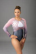 Chloe Grau & Babyrosa Langärmeliger Wettkampf Turnanzug