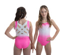 Der atemberaubende Ombre Lycra Turnanzug (vollständig gefüttert für Bescheidenheit und Komfort) Catalina hat die schönsten Steinarbeiten, die an die Aztekenzeit erinnern. Mit dem zusätzlichen NEUEN Merkmal unseres breiten elastischen Rückenteils ist dieser Turnanzug perfekt für Turnerinnen, die gerne in Komfort und Stil auftreten.