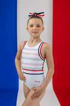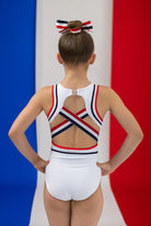Vos rêves peuvent devenir réalité avec ce superbe justaucorps inspiré des Jeux Olympiques de Paris 2024. Avec son dos ouvert et ses larges bretelles élastiques confortables aux couleurs de la France (rouge, blanc et bleu), ce justaucorps est parfait pour les gymnastes qui aiment le look sportif. Fabriqué en Lycra blanc doux et avec des lignes d'application en Lycra bleu marine/rouge, ce justaucorps est doux, respirant et entièrement doublé pour plus de confort et de modestie. Orné de cristaux coréens AB pour une touche d'éclat, ce justaucorps incarne tout ce qui touche au sport... Force, beauté et puissance !