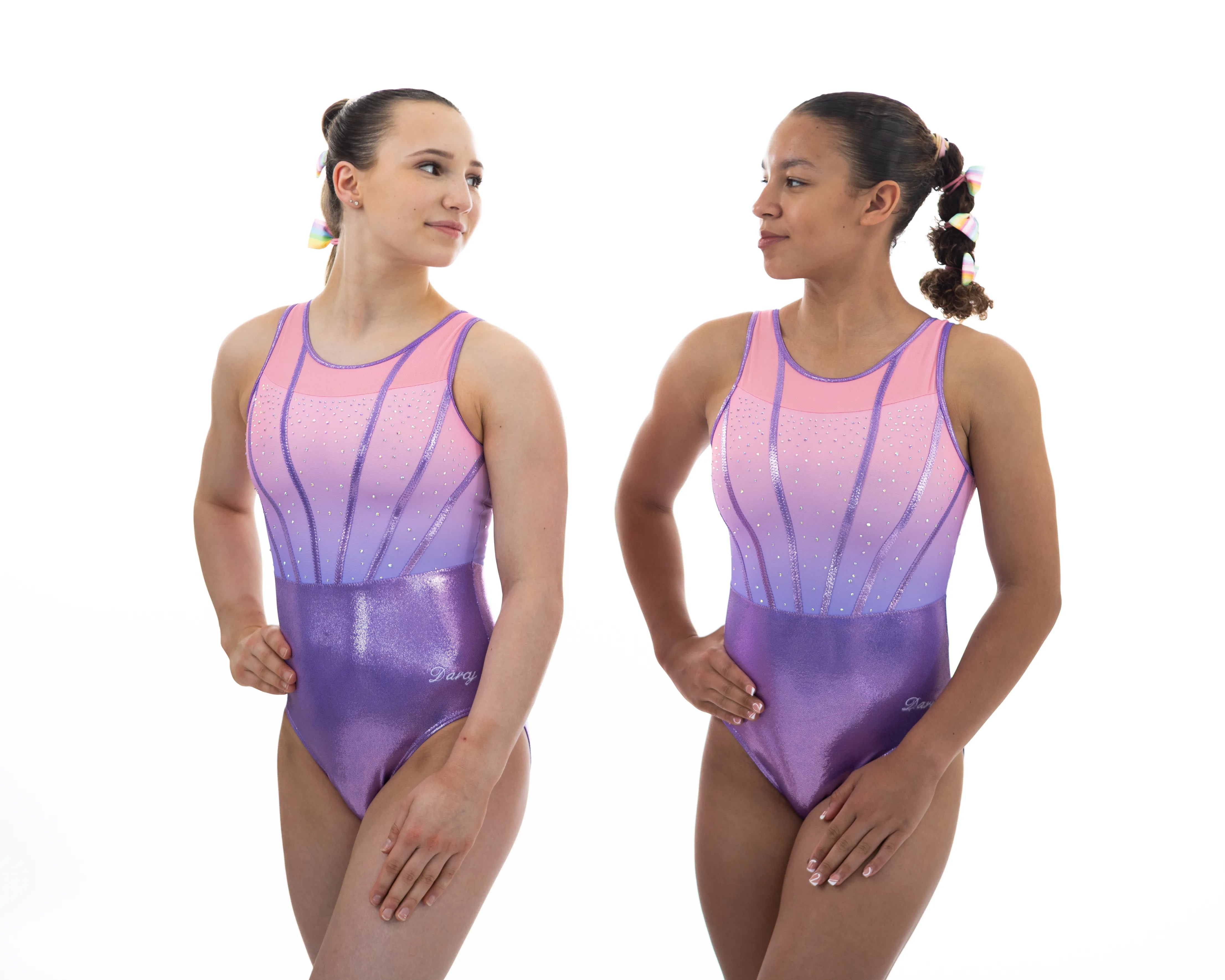 Si vous aimez les couleurs sucrées, nous avons le justaucorps qu'il vous faut ! Bon Bon est le justaucorps parfait pour les gymnastes qui aiment le confort d'un justaucorps de style débardeur sans compromettre la beauté de leur dos ! Avec une section inférieure et un appliqué en Lilas Mystique superposés sur un corsage en maille rose/lilas ombré et orné des pierres coréennes AB les plus étincelantes, Bon Bon a les lignes les plus flatteuses et le détail du dos croisé. Un petit numéro doux, ce justaucorps sera sûr de briller sur la piste d'entraînement.