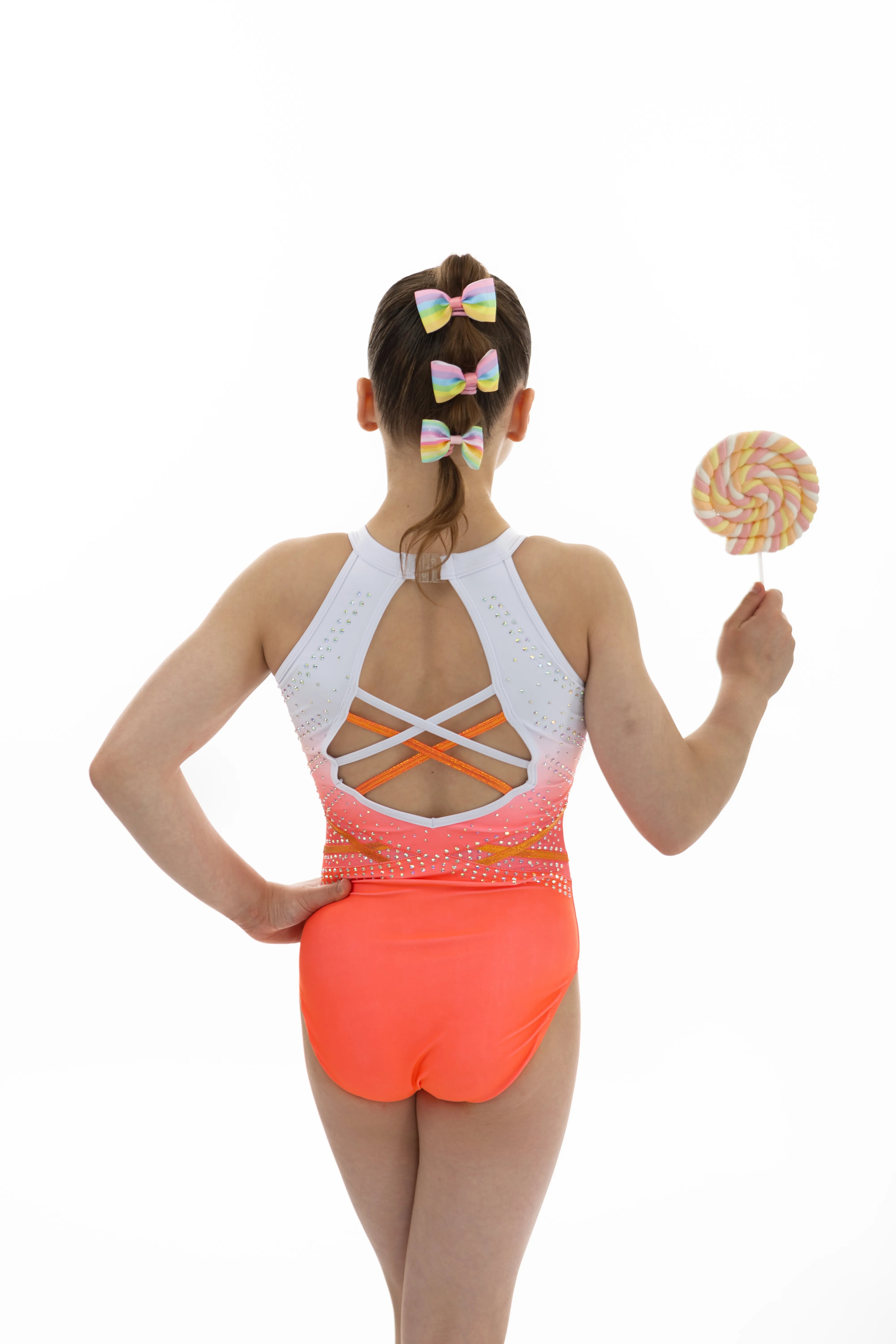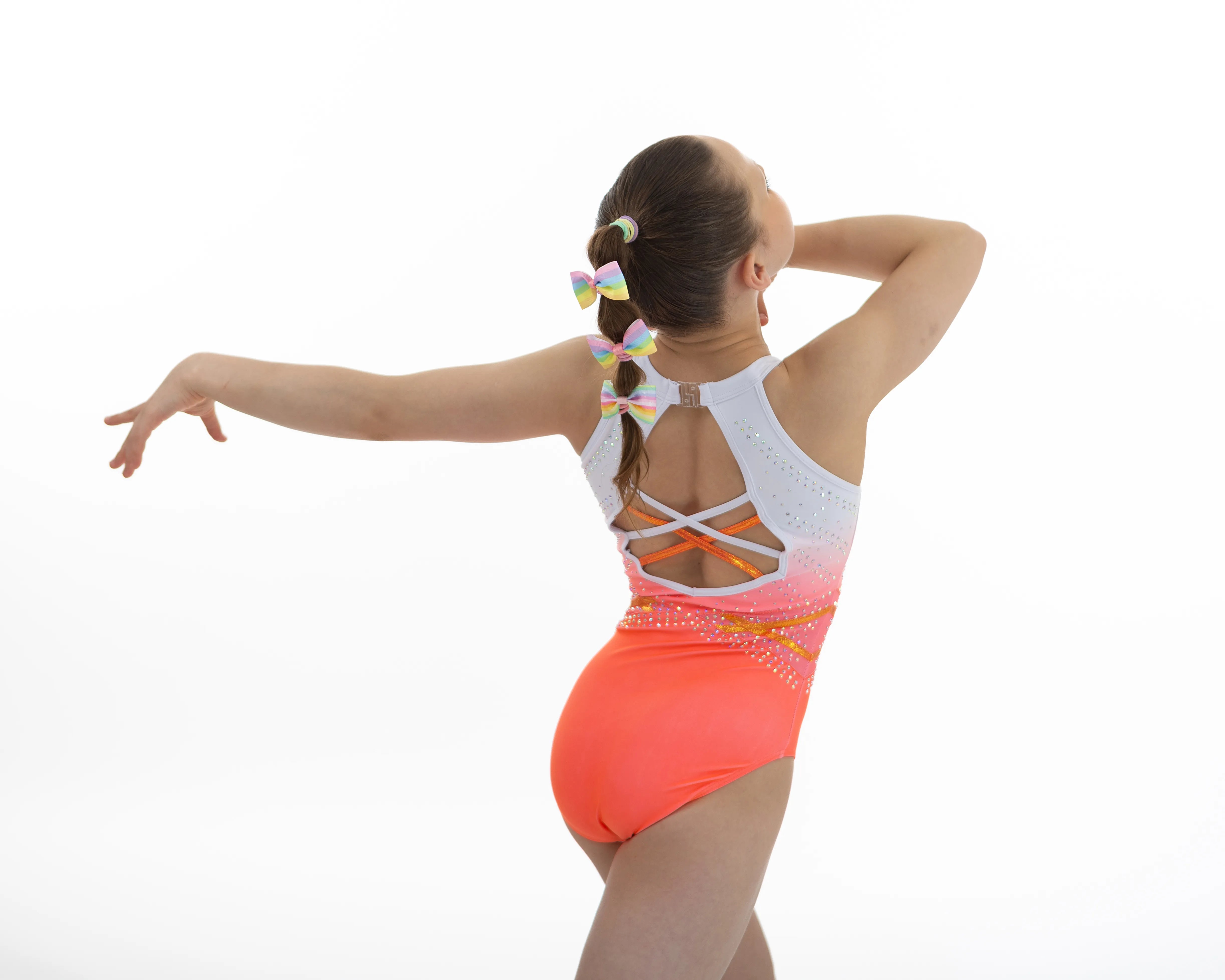 Préparez-vous à être subjugué par ce magnifique justaucorps ! Dans un coloris accrocheur d'orange vif et de blanc, avec des panneaux en maille flatteurs et une applique mystique à la taille, ce justaucorps est un véritable bijou ! Orné de pierres AB et Jelly Tot Orange super scintillantes, Jelly Tot a un col montant des plus élégants et de magnifiques détails dans le dos. Ce justaucorps est entièrement doublé pour plus de confort et de modestie, et il a la couleur pop que vous recherchez cette saison !